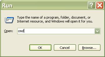 Click Start on the task bar, type cmd into the search box and press Enter.